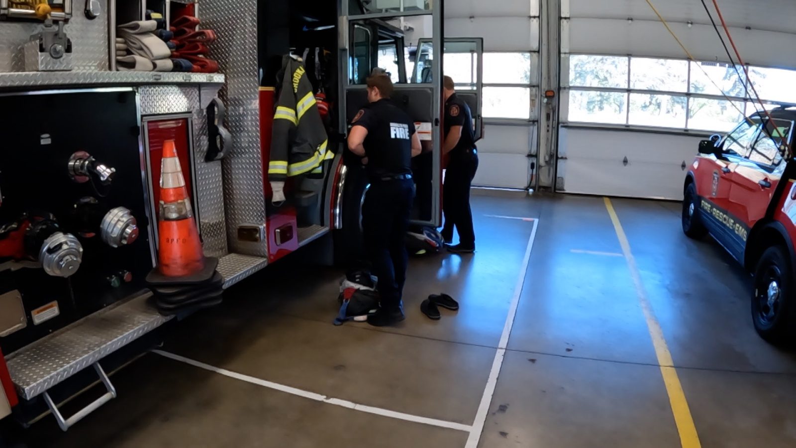 Firefighters gear up to respond to a call from Fire Station #2 in Brooklyn Park in October 2023.