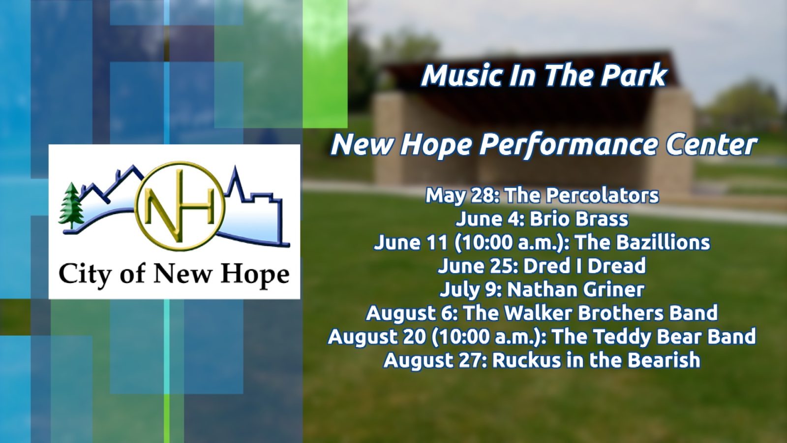 Come out for a free evening of music in the park at the New Hope Performance Center! El Jefe’s Taco Truck will be on site for the evening performances. Bring a blanket or lawn chair for the built-in seating or on the grass.