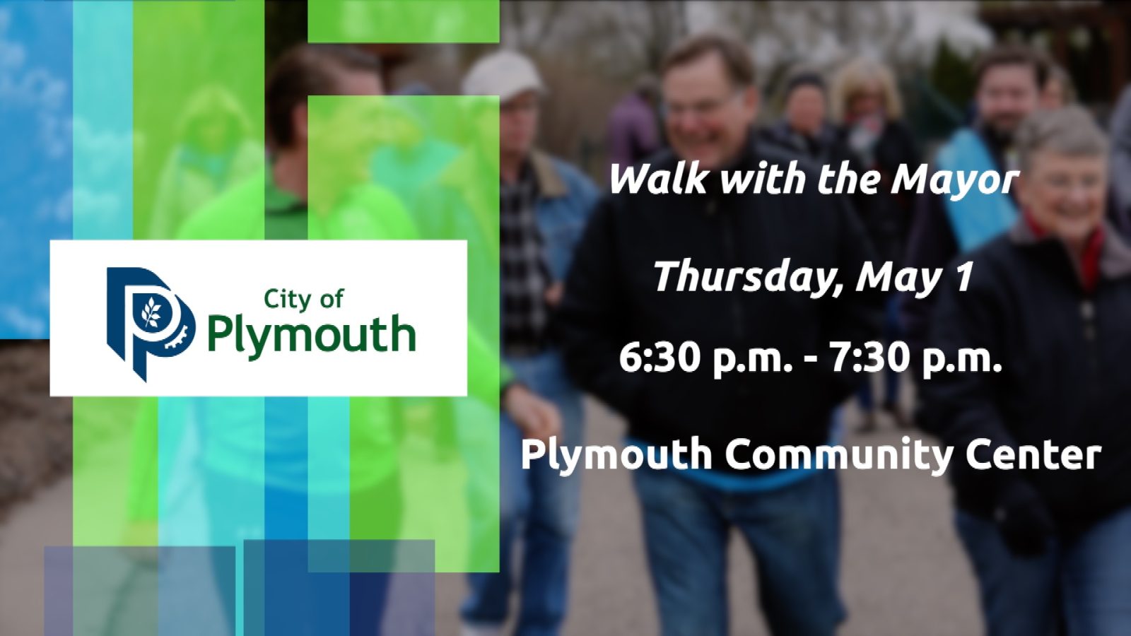 (CITY OF PLYMOUTH) – Residents are invited to participate in the annual Walk with the Mayor event 6:30 p.m. – 7:30 p.m. Thursday, May 1 at the Plymouth Community Center, 14800 34th Ave N.