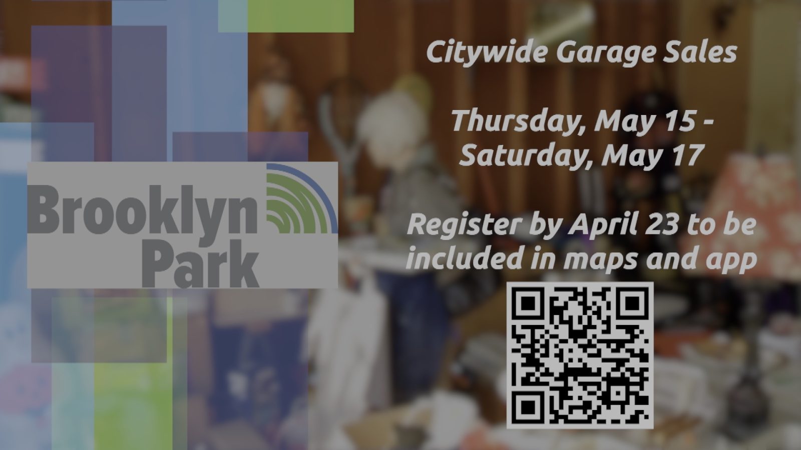 Registration is now open for Brooklyn Park’s annual Citywide Garage Sale, which this year will be Thursday, May 15 – Saturday, May 17. Each year, approximately 150 families participate and host sales in their driveways and garages.