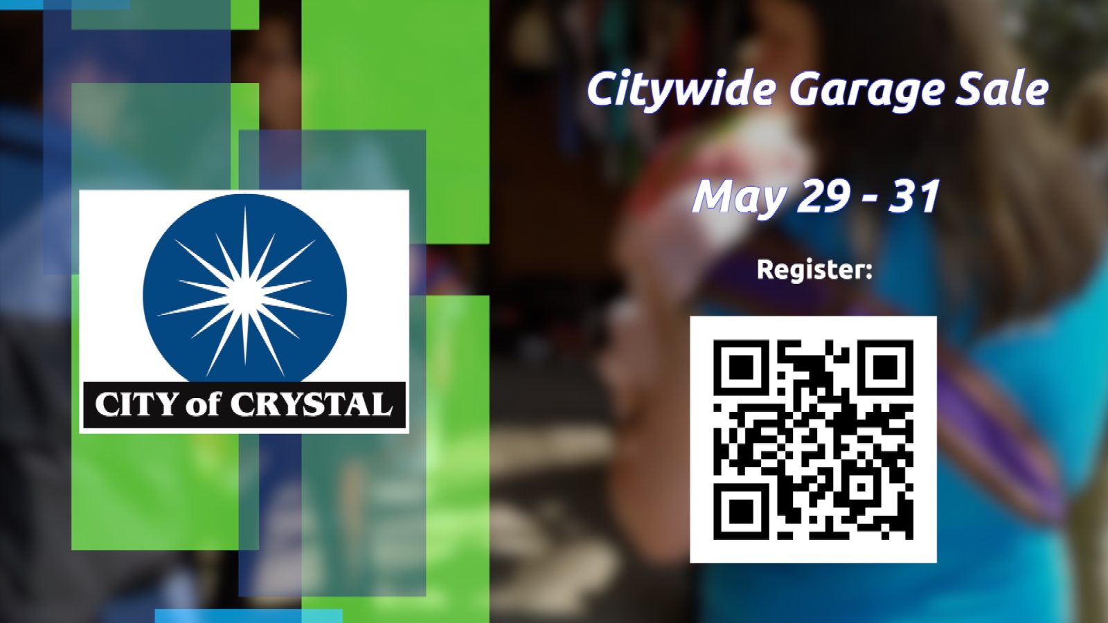 The Crystal Citywide Garage Sale is May 29-31, and starting May 26, maps and guides will be available at the Crystal Community Center.