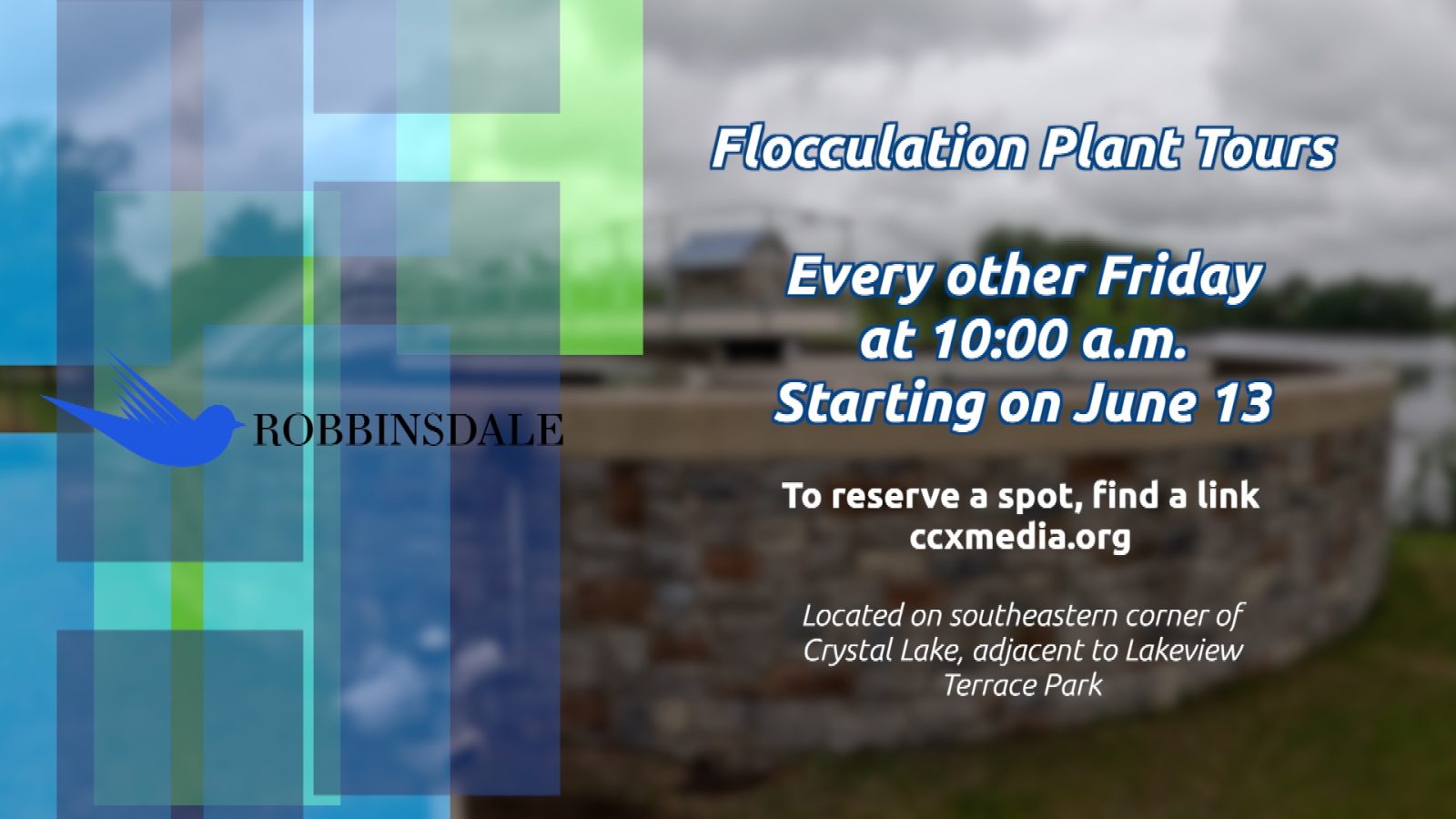 Robbinsdale will once again offer tours of its flocculation plant, located on the southeastern shore of Crystal Lake.