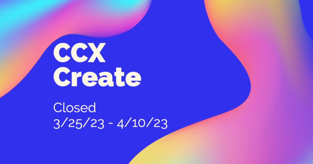 CCX Create will be closed from 3/25/23 – 4/10/23. We will be back to normal hours 4/11/23, opening up at 1pm. We will still be accepting programming through email, Google Drive, or OneDrive. Please submit the release form with each individual program.