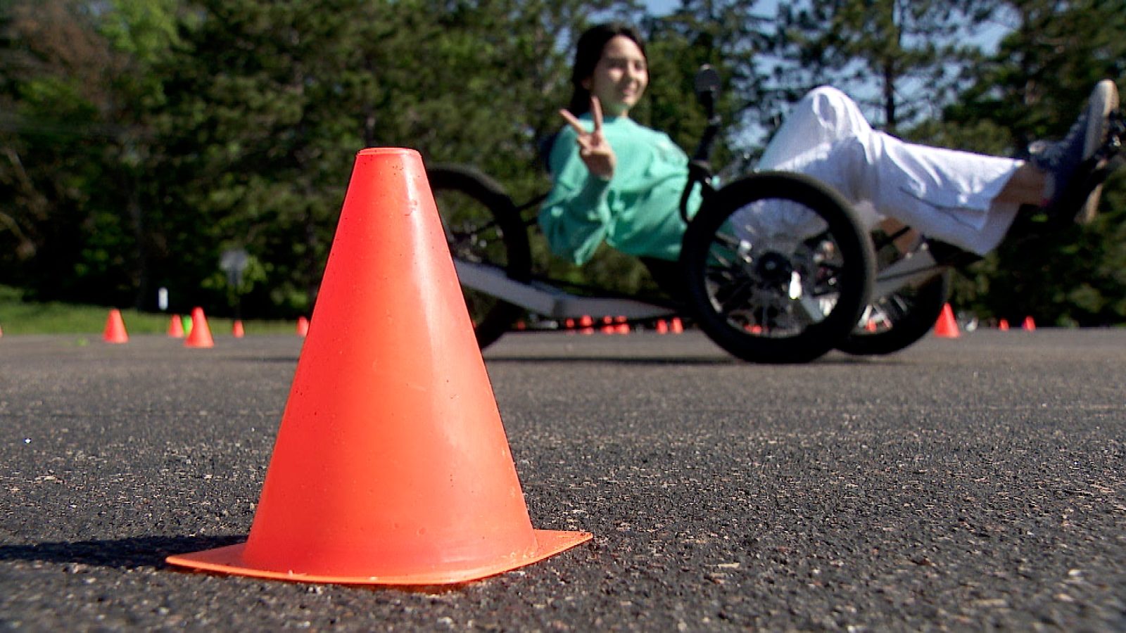 This is the school’s third annual bike day. It’s a chance for these kids to get a special taste of recumbent bikes — bikes that allow riders to sit lower to the ground in a reclining position.