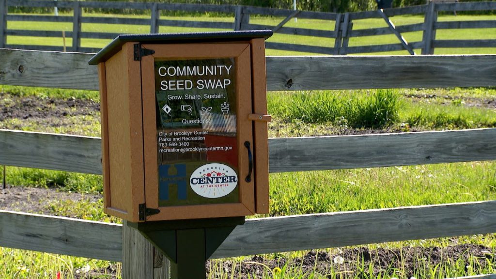 The community “seed swap” is located in a Little Free Library-style box next to the city’s community garden. Rachel Salzer, Brooklyn Center’s recreation coordinator, said the seed swap offers different varieties of fruits, vegetables and herbs.