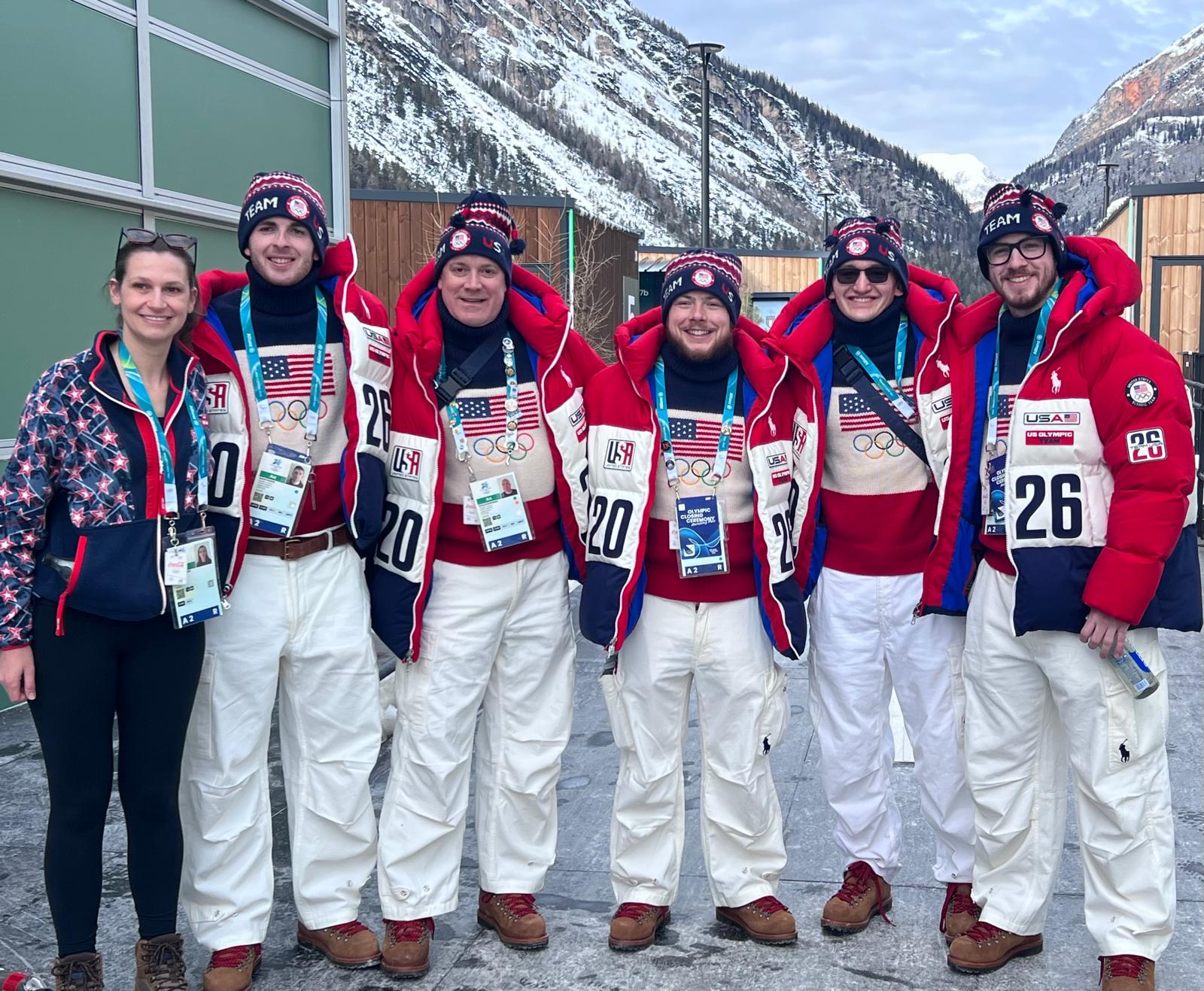 Ruohonen with other members of Team Casper. He said they received multiple suitcases worth of Olympic clothing.