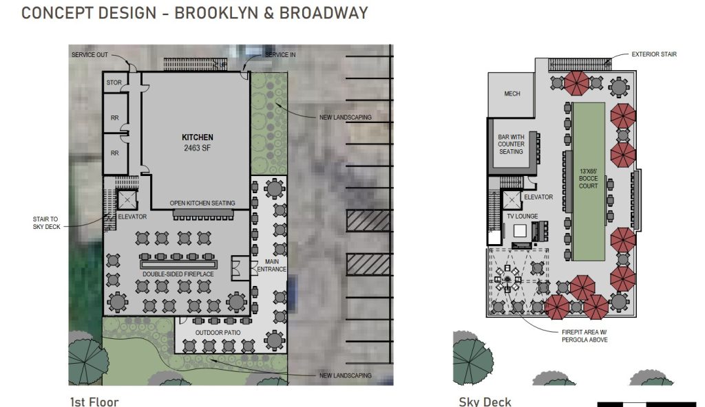 The restaurant concept called Fidel’s Place is proposed for the southwest corner of Northwind Plaza where the new Small Business Center is located at the corner of Brooklyn Boulevard and West Broadway. A future light rail stop is also planned there.