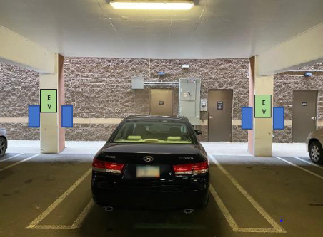 Charging stations would be mounted on existing columns inside Maple Grove Transit Station.