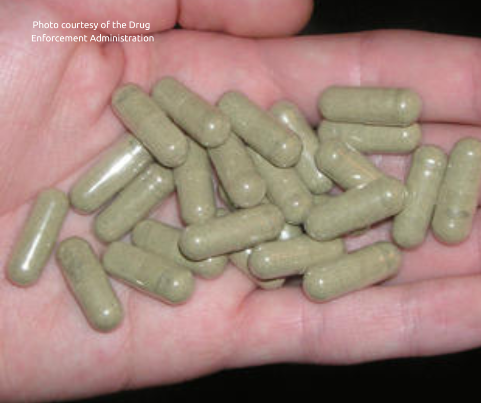 “Consumption of its leaves produces both stimulant effects (in low doses) and sedative effects (in high doses), and can lead to psychotic symptoms, and psychological and physiological dependence,” according to the Drug Enforcement Administration. “Kratom leaves contain two major psychoactive ingredients (mitragynine and 7-hydroxymytragynine). These leaves are crushed and then smoked, brewed with tea, or placed into gel capsules. Kratom has a long history of use in Southeast Asia. In the U.S., the abuse of kratom has increased markedly in recent years.”