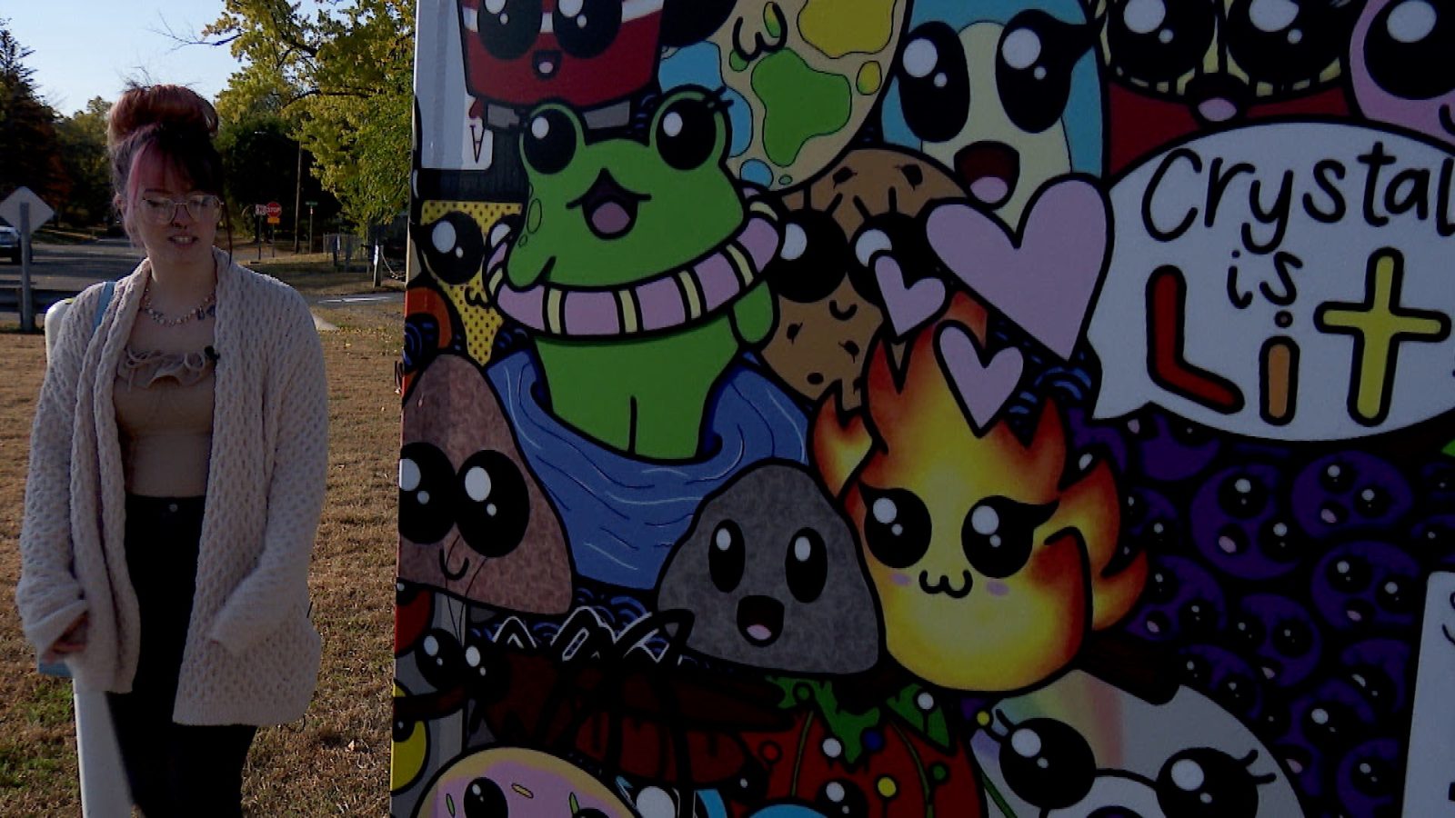 Each piece incorporated elements of Crystal. Some the flag, another a crystal ball. Adrianna Robertson was one of the artists– and she crafted a cartoon-style collage. That was placed at 55th and W. Broadway