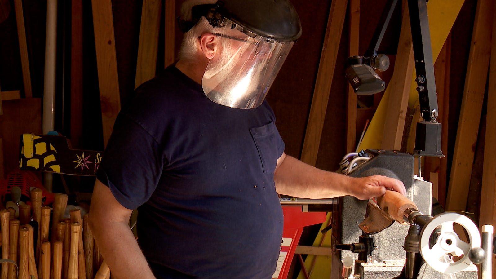 In his garage, Dave Michaelynn is hard at work shaping buckthorn with a lathe. He’s retired, so this work is essentially his full-time job.