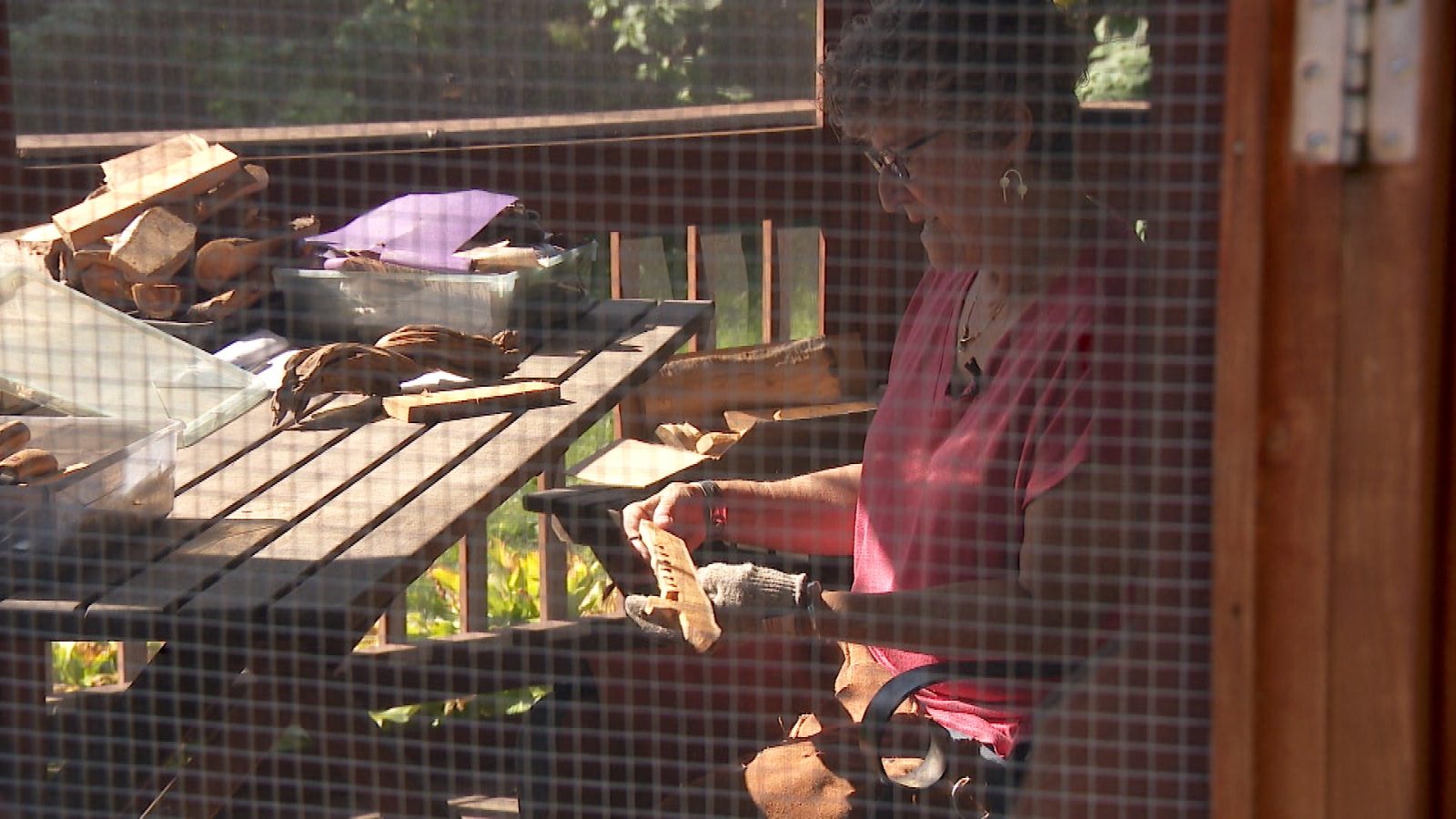 “It’s a very kinesthetically calming process, actually,” Rhoda said, focusing on her carving tools as she works with the buckthorn. Unlike Dave, her process is less mathematical.