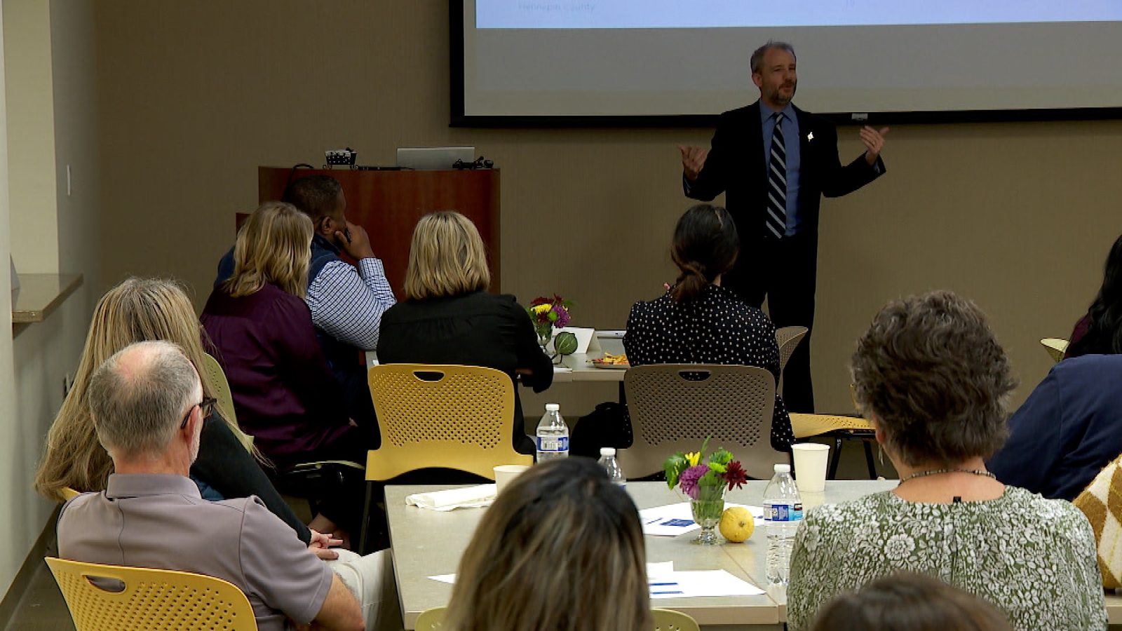David Hewitt, Hennepin County’s housing stability director, spoke to a roomful of people about how the county addresses the issue — a problem he said not every county takes on.