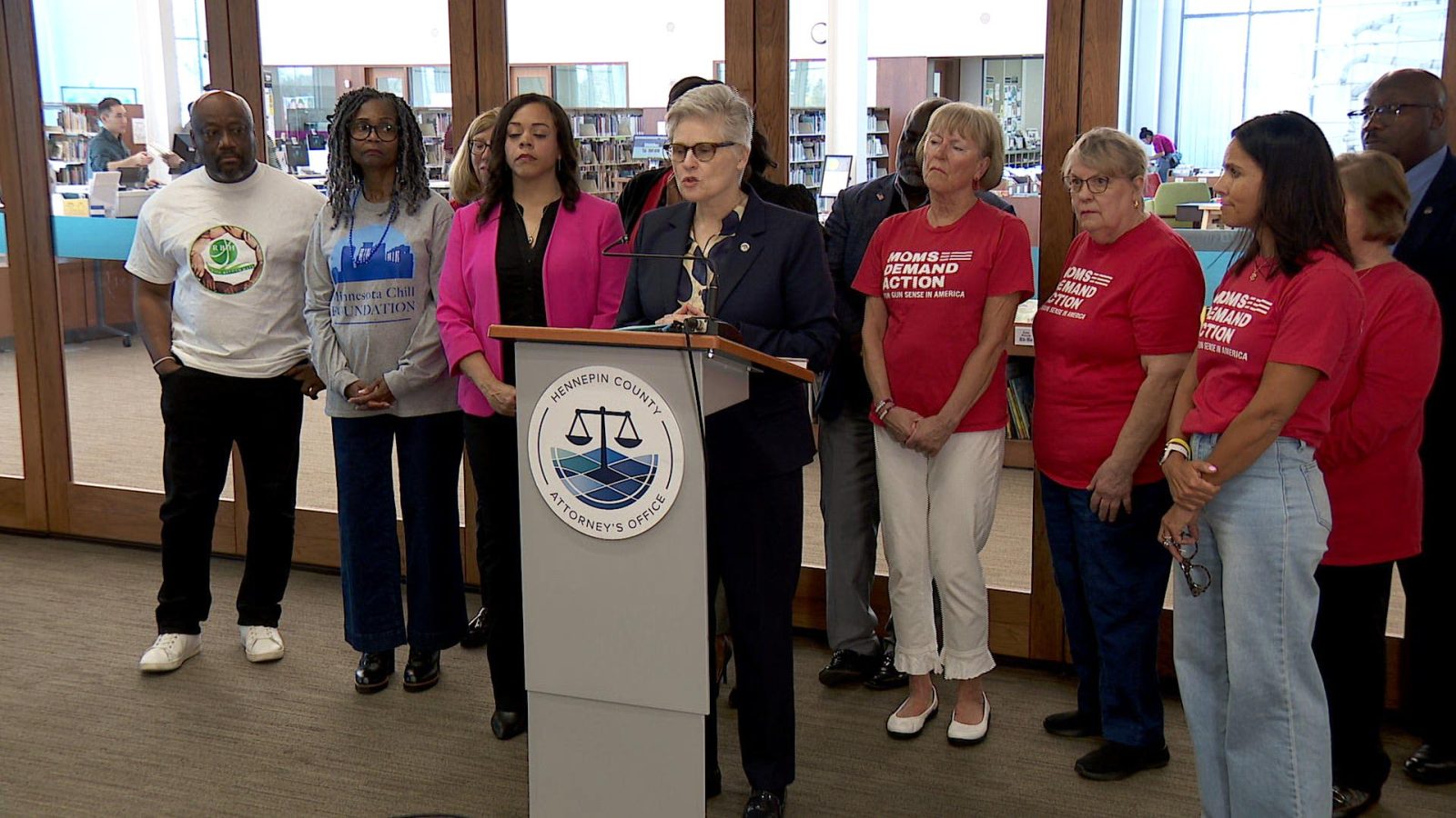 Hennepin County Attorney Mary Moriarty announces a free gun lock giveaway program at the Brooklyn Park Library.
