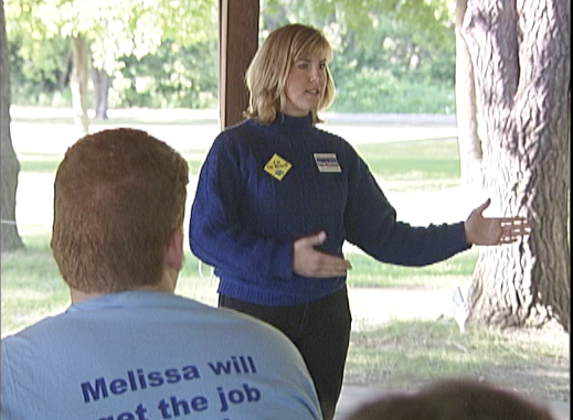 Candidate Melissa Hortman speaking at a campaign event in June 2004.