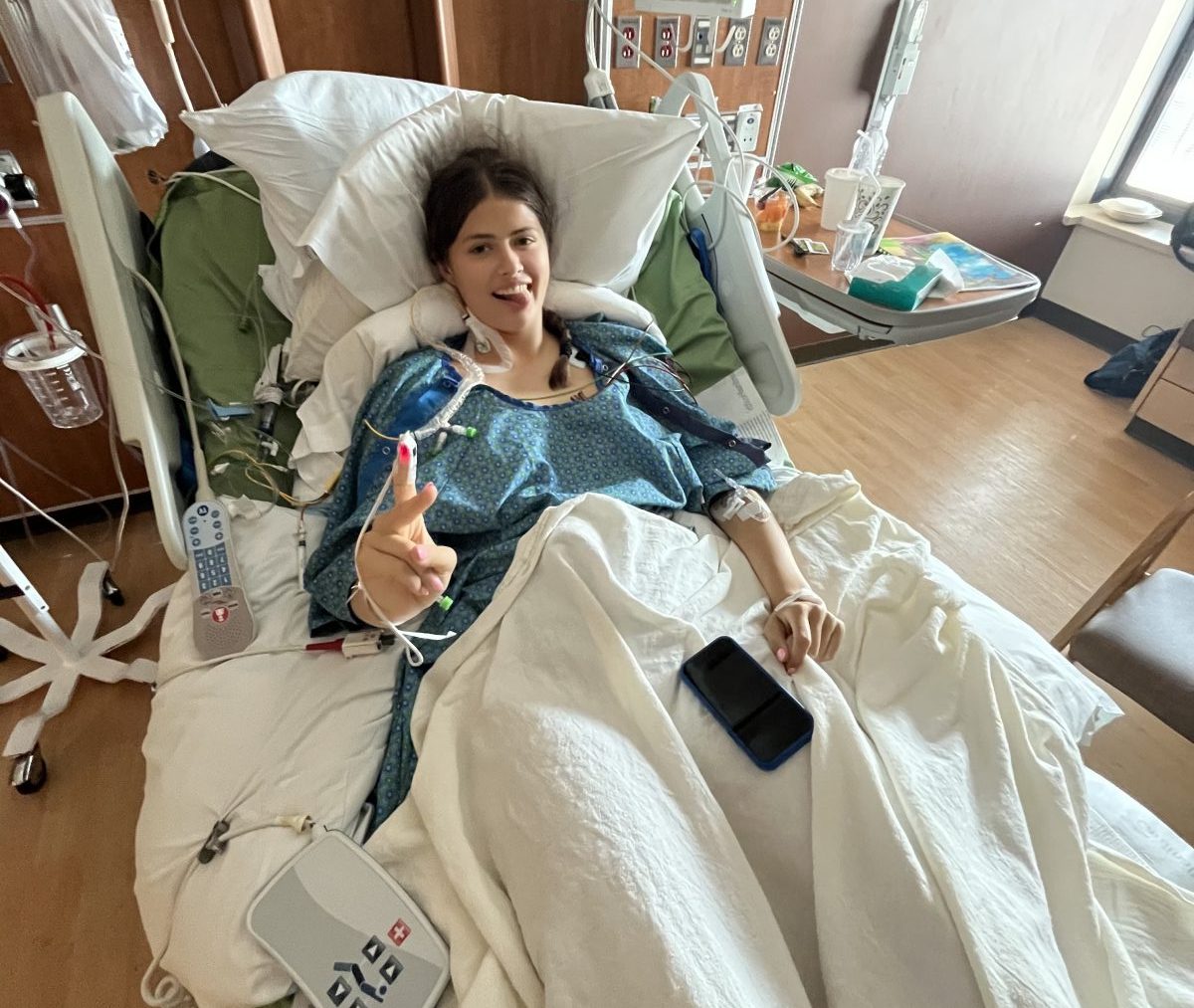 Claire in her hospital bed. She had to wait a month before receiving a diagnosis with expedited genetic testing.
