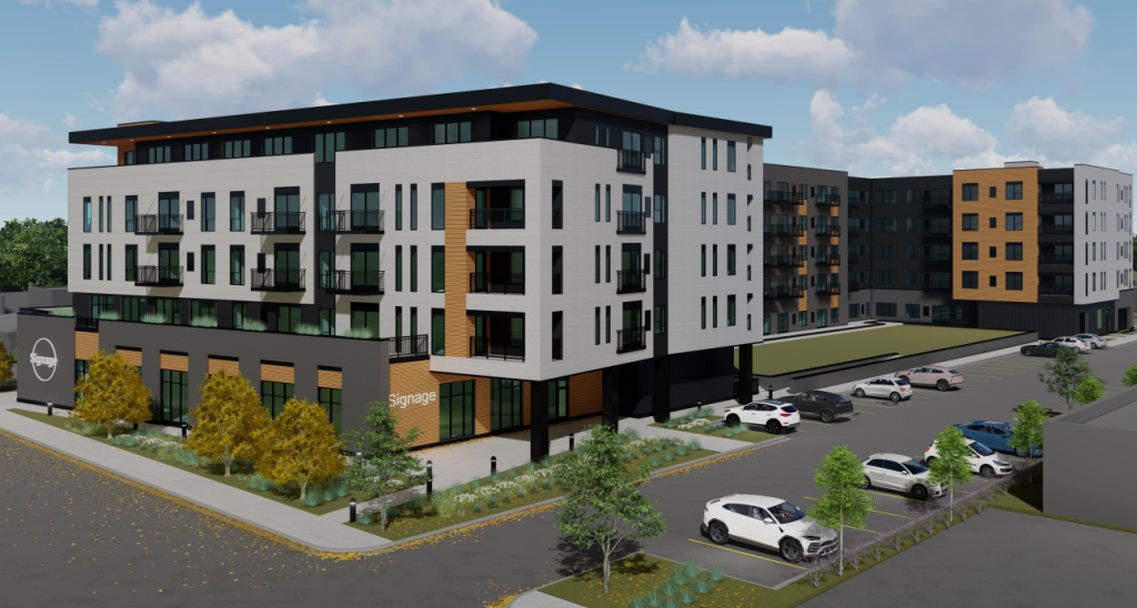 Amenities at the complex would include a fitness room, a package room, bike storage and enclosed garage spaces.