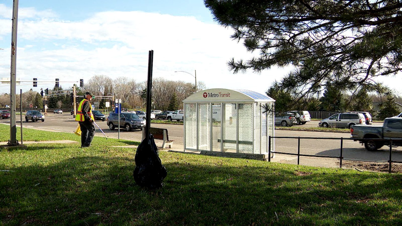 Anyone can sign up to adopt a stop. In Brooklyn Center, Allen Hancock signed up for one just off Highway 252. It’s behind a gas station and he’s in charge of keeping the stop clean once a week.