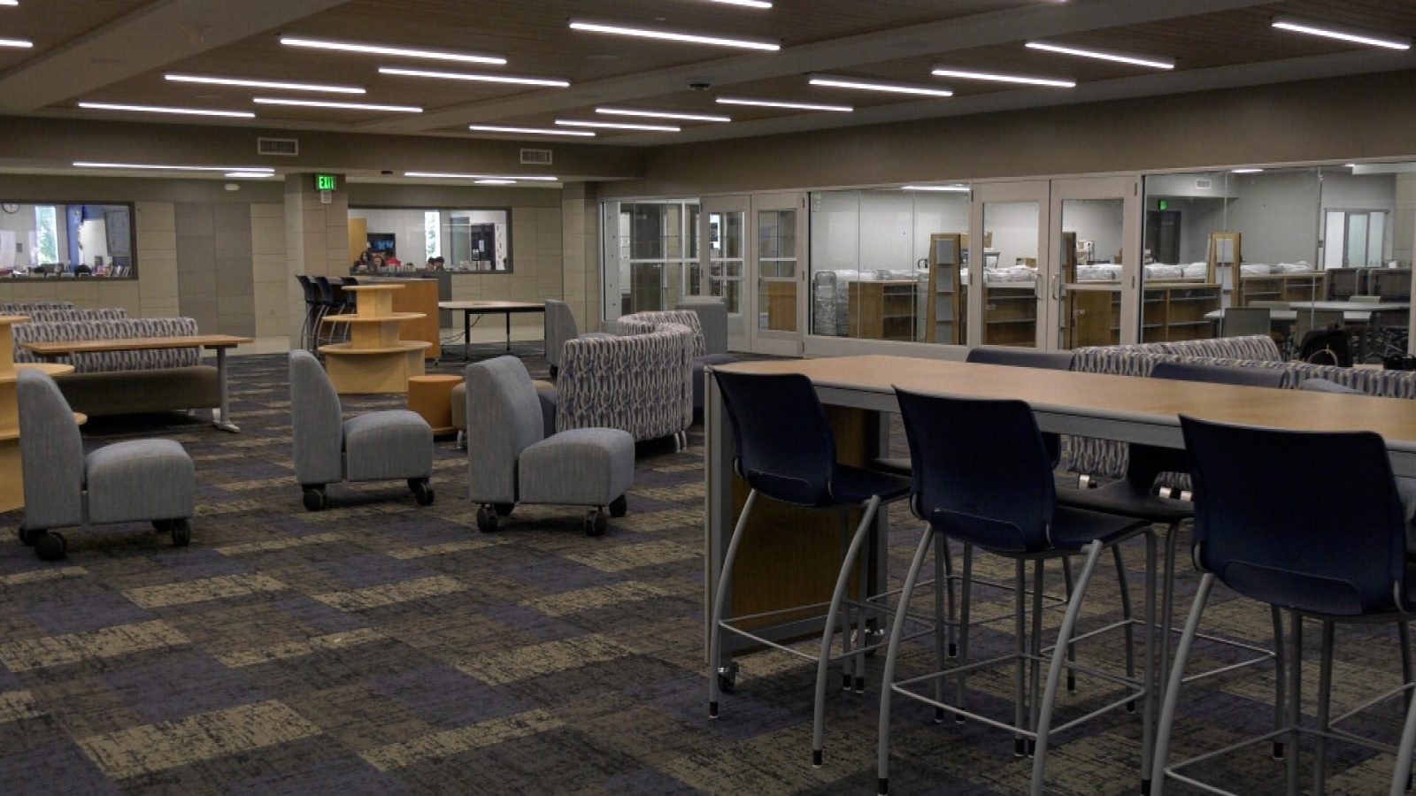 The renovations at North View opened up the second floor, adding glass walls to the classrooms and providing more chairs for flexible learning and collaboration.