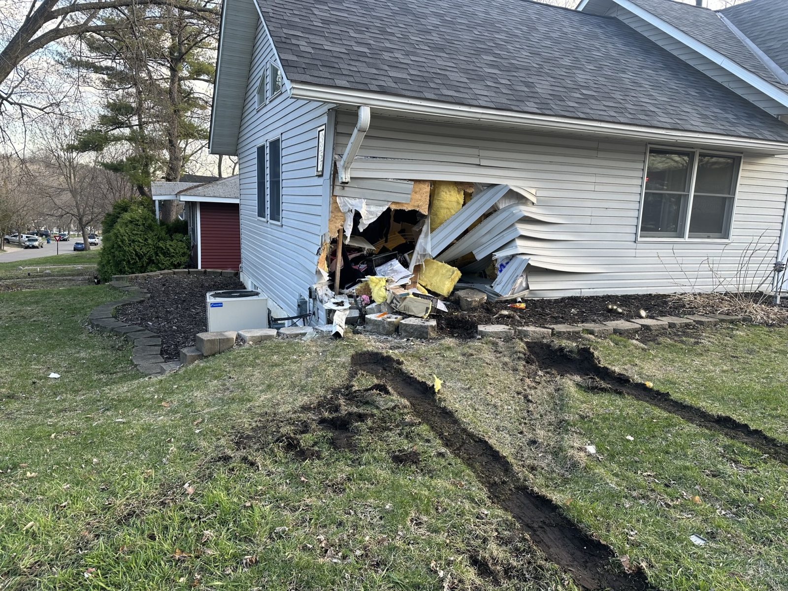 A GoFundMe identifies the residents as Alan and Hailey, who the page says moved into the house this past summer. They had two cats and a dog inside. According to the page, Alan was struck and has eight broken ribs and a broken collarbone from the crash.