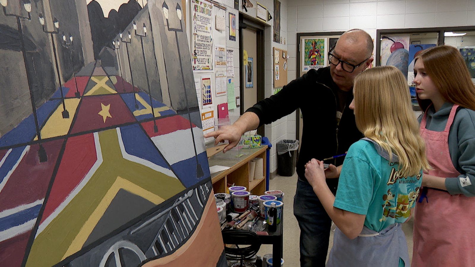 In Gretchen Abegglen’s art classroom, her seventh-grade students share pieces of themselves through art. That idea cloud bubbled into something more: a shared mural. The mural went from ideas to design. Now it’s being given its finishing touches.