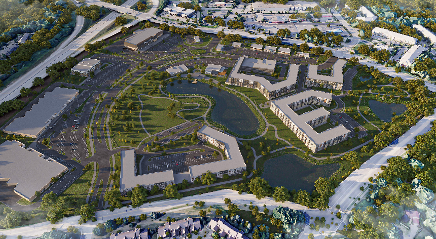 The project will significantly reshape a highly visible location in the city at the corner of Interstate 494 and Bass Lake Road. The site is nearly 80 acres of land.