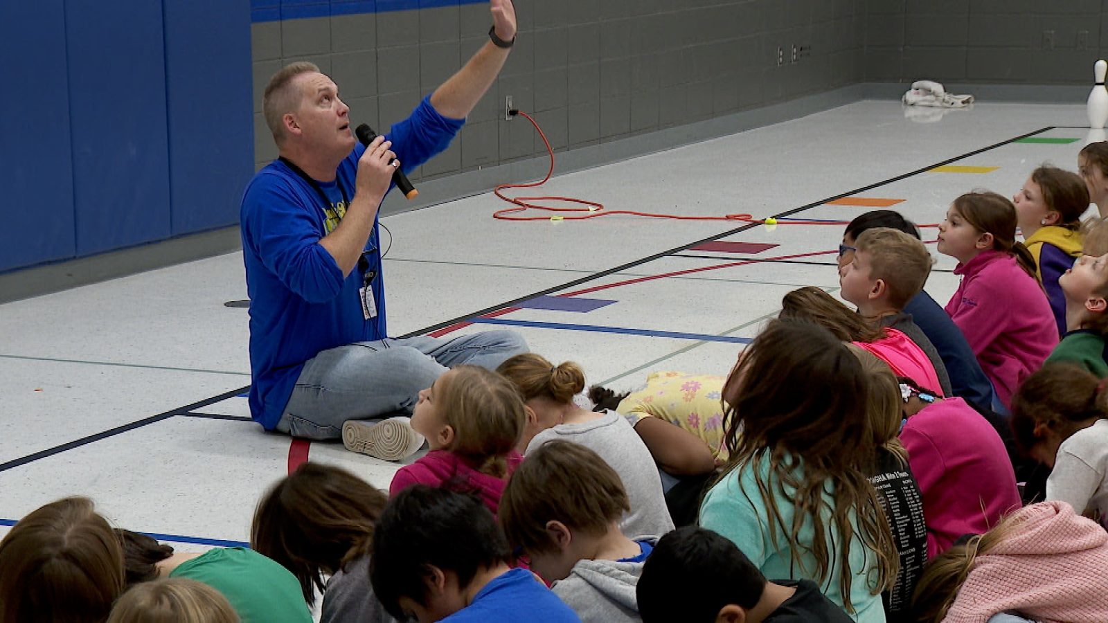 “Welcome second graders!” Gibbs called as kids filed into the gym. “Nice to see you. Come on in!”