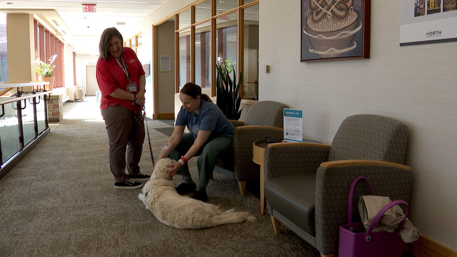 It can be a stressful and unpredictable situation to be in, but Albright said her time’s been positive. Part of that is due to her caretakers, but part of it is also because of the work Maple Grove Hospital staff put in to make the space comfortable. There are twice-a-week massages, gift bags and activities. Something people get most excited for, though, is the arrival of dogs like Birdie.